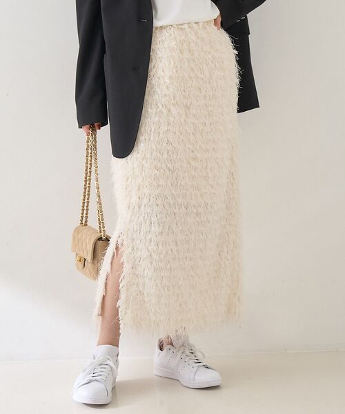 毛足の長いフェザー素材×フリンジディテールが目を引く、
