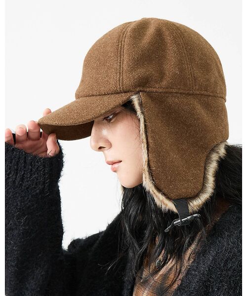 ウールのような見た目と暖かさを持つポリエステル素材で作り上げたフライトキャップ。