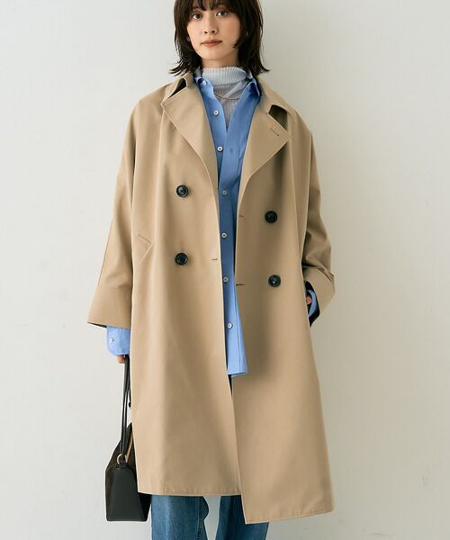 ■雨の日も着やすい、撥水加工の素材トレンチテントコートは冬用のテントコートとは違って軽くさらっと着用できて着痩せして見えます。