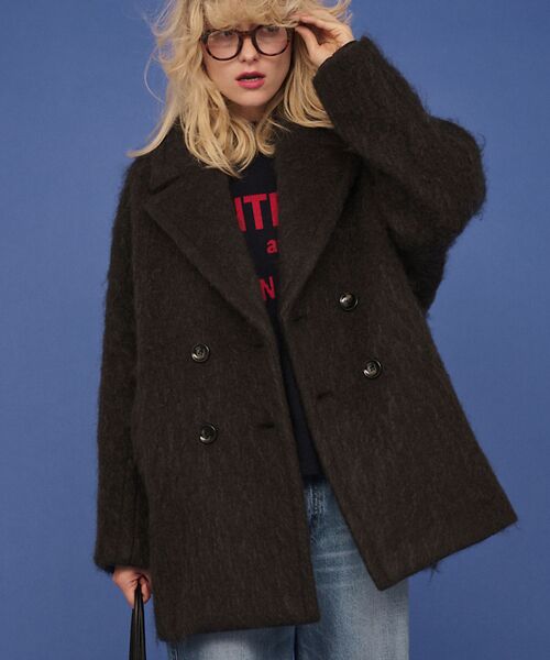 モヘア混の上質シャギー素材を贅沢に使用したPコート。