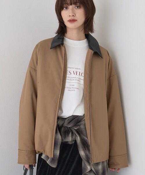 フェイクレザーの襟がアクセントになったこちらの一着は、