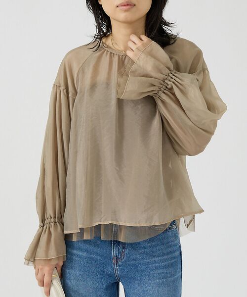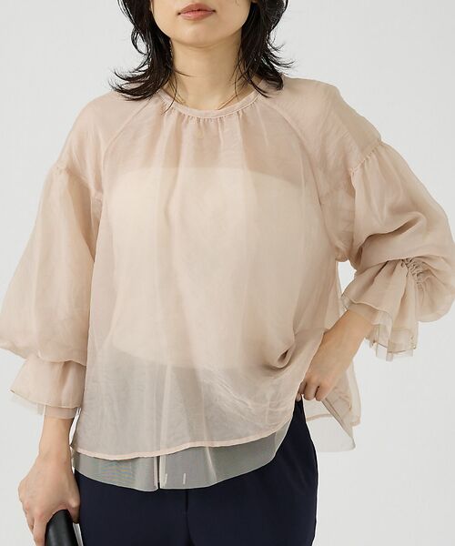 透け感が上品で、インナーとのレイヤードを楽しめるデザイン。