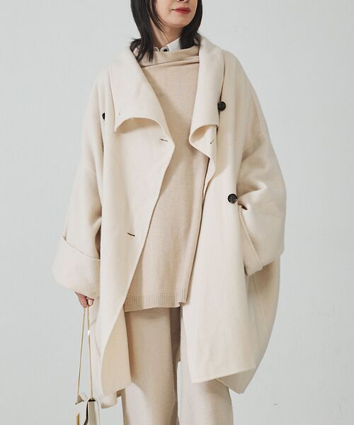 ボタンを留めるとハイネックになりニュアンスのある表情に。