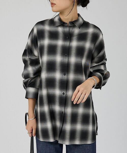 オンブレーチェック柄が印象的なオーバーシャツ。