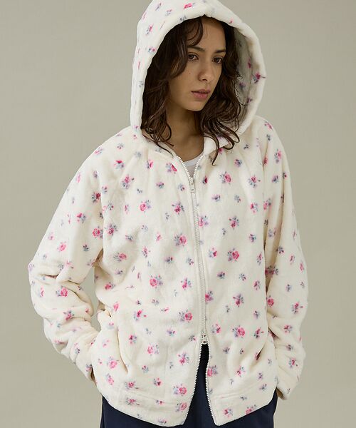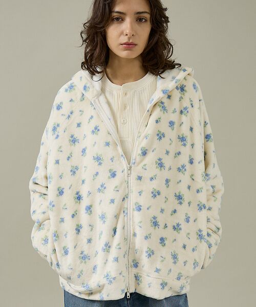 ふわふわの肌触りで着心地がいい花柄フリースフルジップパーカー