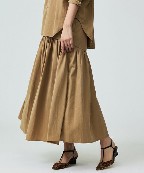 フロントとバックの着替え位置に差をつけたティアードスカート。