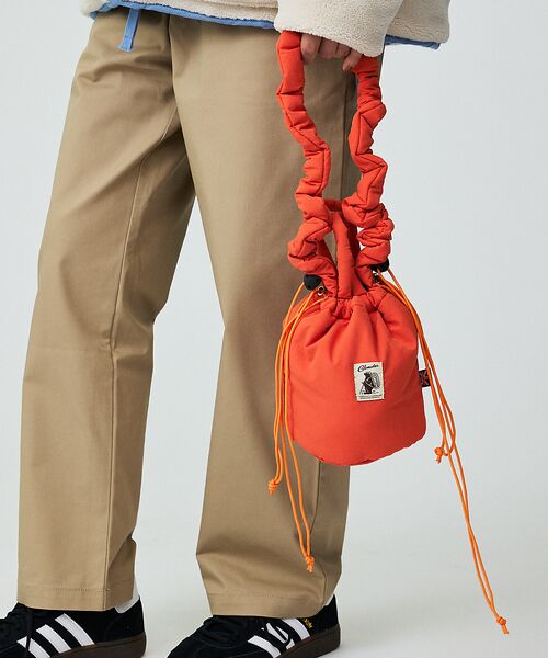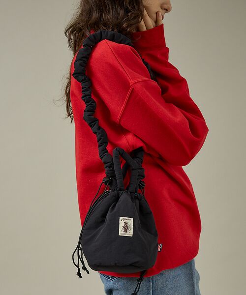 ころんとしたフォルムのシンプルな巾着型ショルダーバッグ。