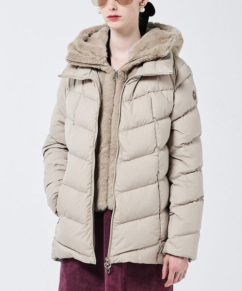 エレガントで実用性に優れたミディ丈ダウンジャケット。