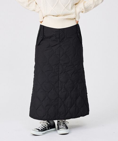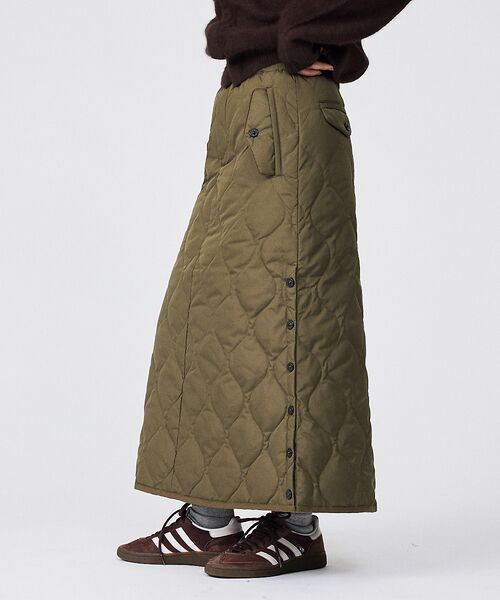 スパッツやパンツとの重ね着もお勧めな、暖かく履き応えのある、ミリタリーテイストのダウンスカートです。