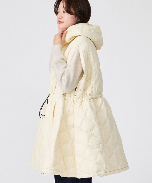 また脇のファスナーを開ければベストとして、閉じればケープとして着こなせたり、ウエストのドローコードを調整すれば、気分やコーディネートに合わせてシルエットを自在にアレンジ可能。