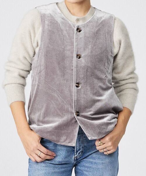 やわらかな光沢をもつ、ベロア素材が、コーデに上品なアクセントをプラス。
