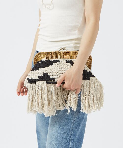 取り外し可能なチェーンが付属しています。ラタンフレームとフリンジが特徴的なデザインです。