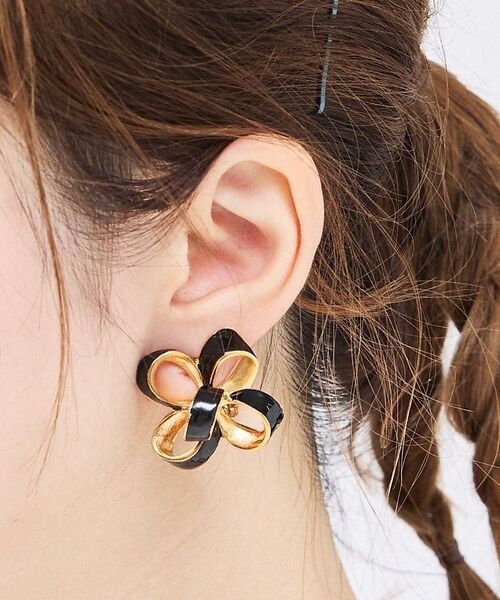 リボンでお花をかたどった、ボリューム感が魅力のイヤリング。
