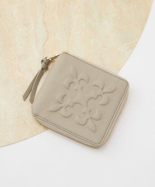 モノグラムのエンボスが印象的なデザインに、ラウンドファスナーでスマートな印象をプラス。