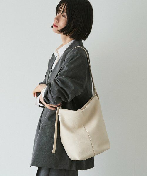シボ感のあるレザーの落ち感を活かし、持ち方次第で表情を変える一品です。