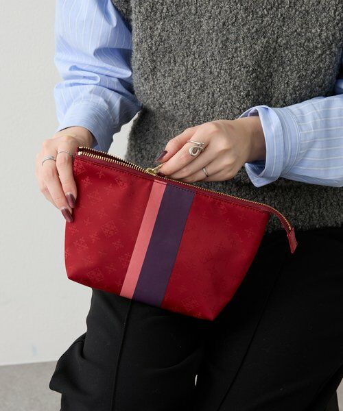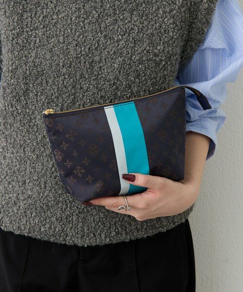 モノグラム生地にバイカラーラインを配した、スタイリッシュなMサイズポーチ。
