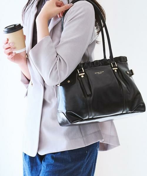 バッグの正面と側面はベルトデザインになっていて、甘すぎず大人な女性にもぴったりです。