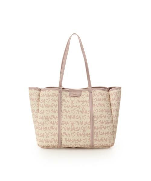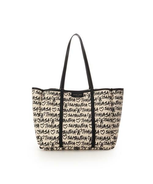 ◇Samantha Thavasa(サマンサタバサ)のスクリッタ柄キャンバスデザイン合皮トートバッグ[Revival Collection]サマンサタバサで大人気のスクリッタ柄をあしらったマルチトートバッグ。【デザイン】キャンバス生地のような柔らかい合皮を使用し、一見キャンバスバッグに見えるデザインが特徴です。ランダムな手書き風の総柄を各カラーにあわせて仕上げました。シーンに合わせて使い分けできる長さが違う持ち手もポイント。軽量で持ちやすく、通勤・通学やお出かけなどマルチに活躍するバッグです。【素材】キャンバス生地のような合成皮革を使用しています。不思議とずっと触っていたくなるような、柔らかな触り心地が良いのが特徴です。【サイズ感】A4サイズ…〇 ノートパソコン(13インチ)…〇<商品のお取り扱いについて>この商品はデザインの一部にプリント技法を用いています。摩擦や高温多湿の環境、他の素材と密着した状態での保管はプリントの剥がれや移染の原因となります。プリント技法の特性とご理解した上でお取り扱いをお願いいたします。