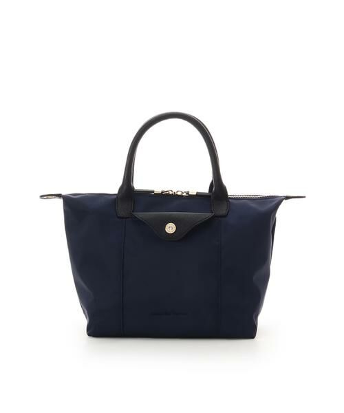 ◇Samantha Thavasa(サマンサタバサ)のナイロン×スプリットレザー カジュアルハンドバッグナイロン素材の軽量なカジュアルハンドバッグ。【デザイン】軽くて扱いやすいナイロン素材と持ち手やポケットのかぶせ部分にはスプリットレザーを使用。スプリットレザーを取り入れているのでカジュアルになり過ぎず、きちんと感も漂うデザイン。ポケットのかぶせ部分にはゴールドカラーのオリジナル金具のビジューがきらりと輝きます。大きめのフロントポケットはすぐに取り出したいパスケースなどの収納に最適で、バッグの内装はざっくりと荷物がいれることができるので収納力も抜群です。付属にショルダーベルトがついてくるのでシーンよって使い分けができるのも嬉しいポイント。【素材】ナイロン素材を使用しています。【サイズ感】A4サイズ…×、長財布…〇、500mlボトル…〇