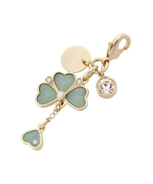 ◇Samantha Thavasa(サマンサタバサ)のクローバーモチーフ ファスナーチャーム淡い色合いのクローバーモチーフのファスナーチャーム。【デザイン】四葉のクローバーのモチーフをトップに使用し、まるでストーンのような淡い色合いで表現。クローバーモチーフの葉の1枚はチェーンで繋ぎ、動くと揺れる仕様にしました。金具部分には大粒のビジューをあしらい、バッグなどにつけるだけで上品に演出できるアイテム。