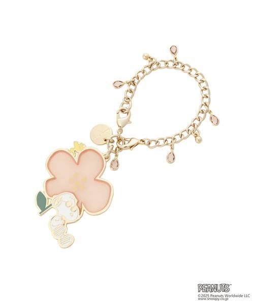 透き通るクリア素材のフラワーモチーフに「ジョー・クール」と「ウッドストック」が寄りかかる愛らしいデザインの2wayチャーム。