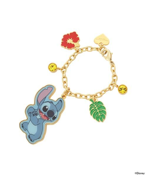 ◇Samantha Thavasa Petit Choice(サマンサタバサプチチョイス)の「スティッチ」コレクション バッグチャーム「スティッチ」が何かを思いついたような表情がポイント。チェーンにはハイビスカスやバナナの葉っぱをイメージした金具やストーンをデザイン。