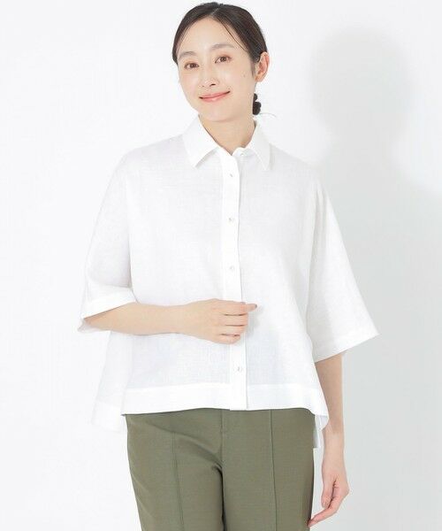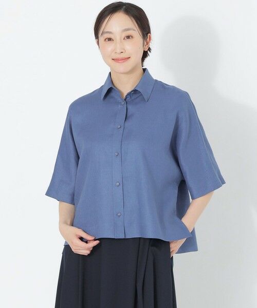 カラーリネンハーフスリーブシャツ