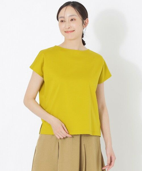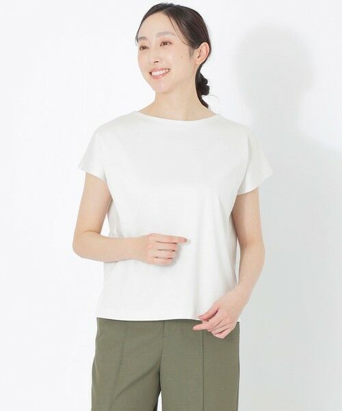 袖の切り替えがなく肩に馴染むフォルムが、カジュアルなTシャツをエレガントな印象にしてくれます。