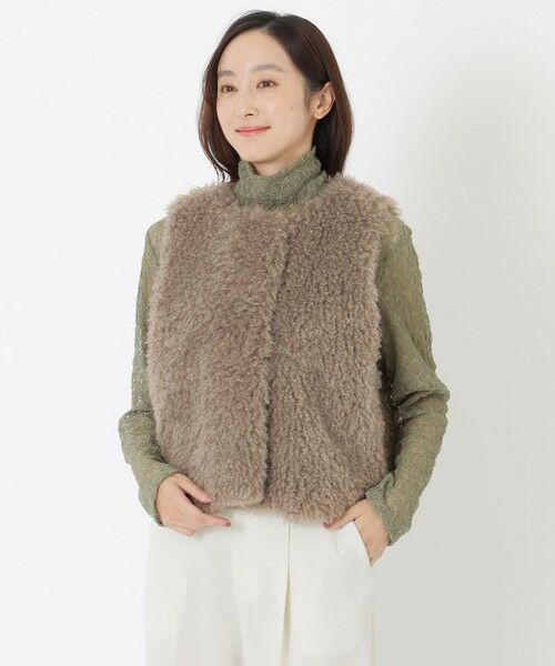 毛足のあるカール素材を使用したショート丈ファーベスト。