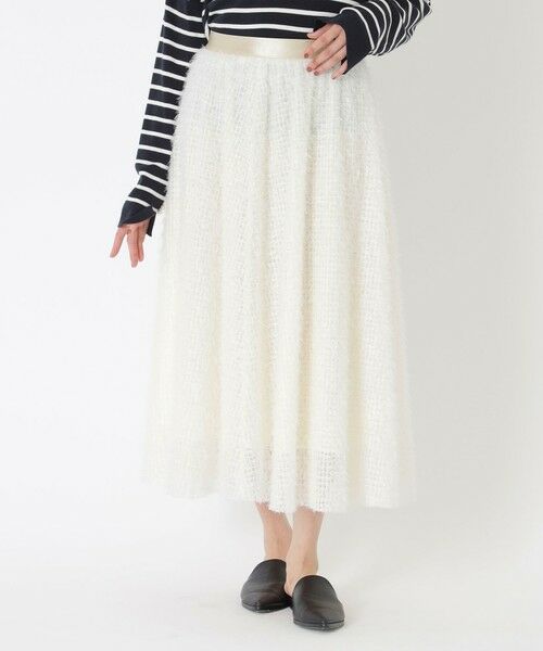 フェザーチュールスカート【デザイン】素材感のインパクトがありながら軽さもありオールシーズン着用できる一着です。ウエストゴム仕様で、履きやすい点もポイントです。【素材】チュールベースにフェザー調の毛足がある華やかな素材感のスカートです。※この商品はサンプルでの撮影を行っています。実際の商品とイメージ、仕様が異なる場合がございます。