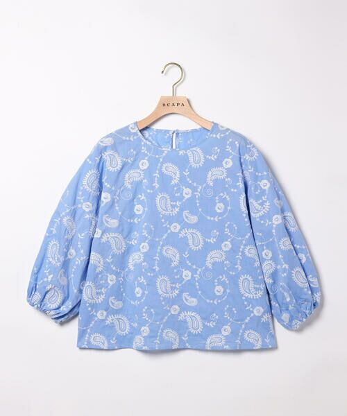 丁寧なペイズリー刺繍をあしらったプルオーバーブラウス。爽やかで涼しげなコットン生地を使用しています。柄特有のエレガントでエスニックな雰囲気も魅力。シルエットはほどよくコンパクトな作りで、ふんわりした袖が可愛らしい印象。無地のワイドパンツやギャザースカートに合わせるだけで、華やかな着こなしが楽しめます。