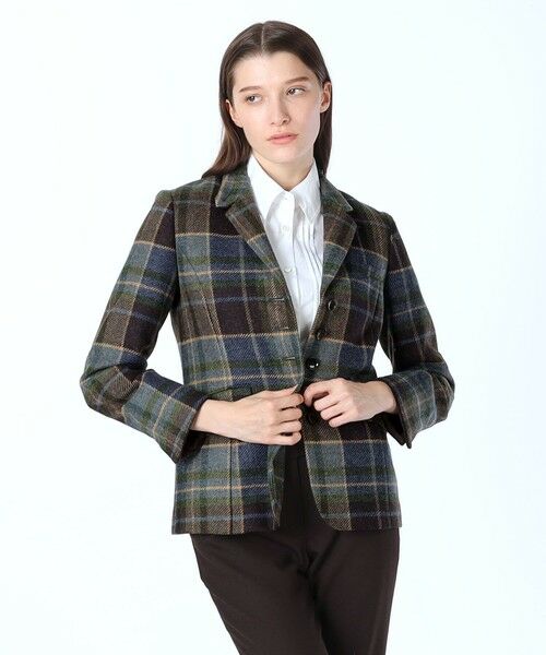 ウォーム感があるツイード生地のテーラードジャケット。チェック柄や5つボタンのフロントがクラシカルな印象です。すっきりとしたシルエットとほどよい丈感はさまざまなボトムスと好相性。ロゴ入りのボタンや裏地の部分的なペイズリー柄など、細部にまでこだわりが十分です。同素材のスカートもございます。※商品画像はサンプルを使用しているため、実際の商品と色味などの仕様が異なる場合がございます。予めご了承ください。model:T.175/B.83/W.59/H.89着用サイズ:38