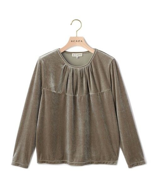 光沢感のあるベロア生地で仕立てたエレガントな長袖カットソー。ストレッチ素材で身体の動きにフィットし、着心地も快適。首元のタックで出来るフロントのナチュラルなドレープ感がフェミニンなデザインディテール。シンプルなデザインで様々なスタイルのボトムと好相性。シックなお出かけスタイリングが叶う一枚です。※商品画像はサンプルを使用しているため、実際の商品と色味などの仕様が異なる場合がございます。予めご了承ください。model:T.175/B.83/W.59/H.89着用サイズ:38