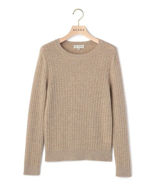 カシミヤをふんだんに用いたニットトップス。レースのような模様が浮かぶ編地で、上質ながらも大人の女性らしい気品を備えた1点です。身体にすっきりと寄り添うシルエットは、ジャケットなどのインナーにも最適。1枚使いでしっかり暖かさを実感できる、頼もしいアイテムです。ネックラインが開きすぎていないのもきちんとした印象で楽しめるポイント。
