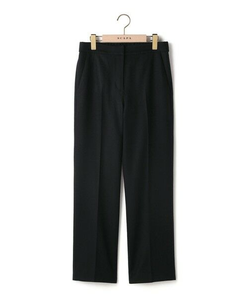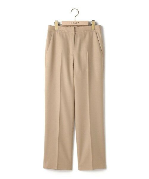 センタープレス入りできちんと感のあるデザインのパンツ。少し起毛感のある柔らかなフラノ生地で仕立てた一枚。ストレッチ生地で身体の動きにフィットし、快適な履き心地。ウエスト後ろ部分がゴム仕様なのもうれしいポイント。汎用性の高いストレートシルエットでオン・オフ問わずコーディネートに活躍します。※商品画像はサンプルを使用しているため、実際の商品と色味などの仕様が異なる場合がございます。予めご了承ください。