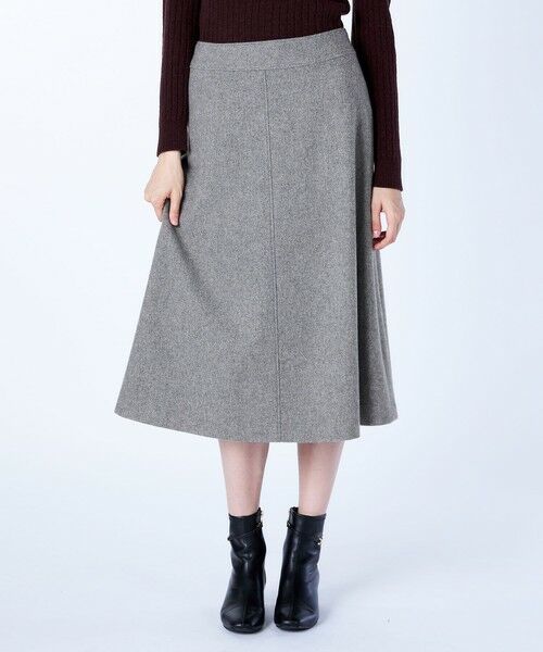 毛混のツイード素材を用いたフレアスカート。気品のある佇まいは、秋冬のクラシカルなスタイリングに最適です。裾に掛けて綺麗に広がるシルエットで、サイドでは優美なドレープがゆったりと揺れるデザイン。ニットトップスにもジャケットにも合わせやすく、エレガントなスタイリングをお楽しみいただけます。※商品画像はサンプルを使用しているため、実際の商品と色味などの仕様が異なる場合がございます。予めご了承ください。model:T.175/B.83/W.59/H.89着用サイズ:38