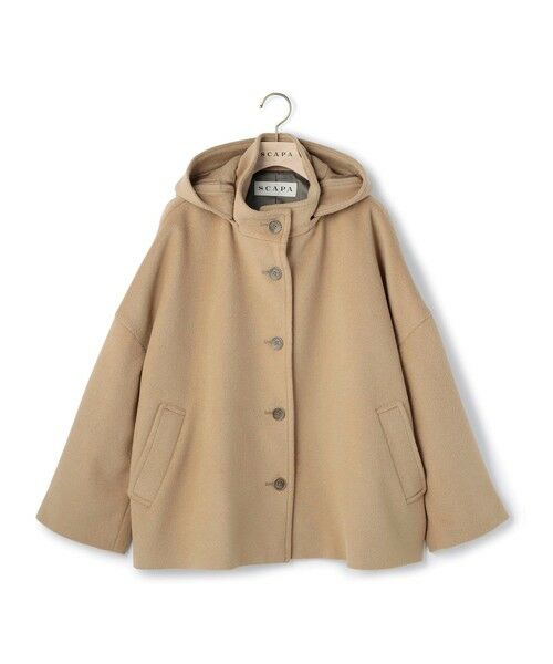 アンゴラと毛の混合生地でやわらかであたたかな肌触りが魅力のショート丈フード付きコート。ドロップショルダーと抜け感とゆとりのあるシルエットが今年らしいポイント。フロントのボタンはブランドロゴ入りのオリジナルデザインで細部までこだわりを感じられるデザイン。シンプルで様々なスタイリングにマッチするアイテムです。