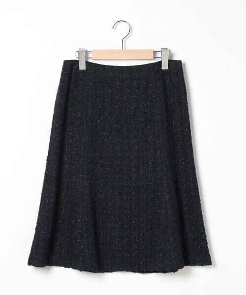 裾に向かってゆるやかに広がるフレアシルエットが美しいスカート。品の良いラメ糸を織り込んだツィード風素材がレディなスタイルを叶えます。バックジップクロージャーで着脱もスムーズ。同素材のジャケットとセットアップで着こなすと、より洗練されたムードに。