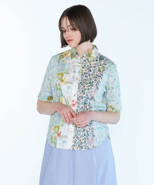 可憐な印象のフラワーを使用したパッチワークデザインのブラウス。さまざまなタッチや配色がバランス良くミックスされ、上品な存在感を発揮しています。縦ラインの切り替えですっきりと見えるのも特徴です。シンプルな無地のスカートと合わせて、フェミニンなコーディネートのポイントとしても活躍します。※商品画像はサンプルを使用しているため、実際の商品と色味などの仕様が異なる場合がございます。予めご了承ください。model:T.172/B.82/W.63/H.93着用サイズ:38