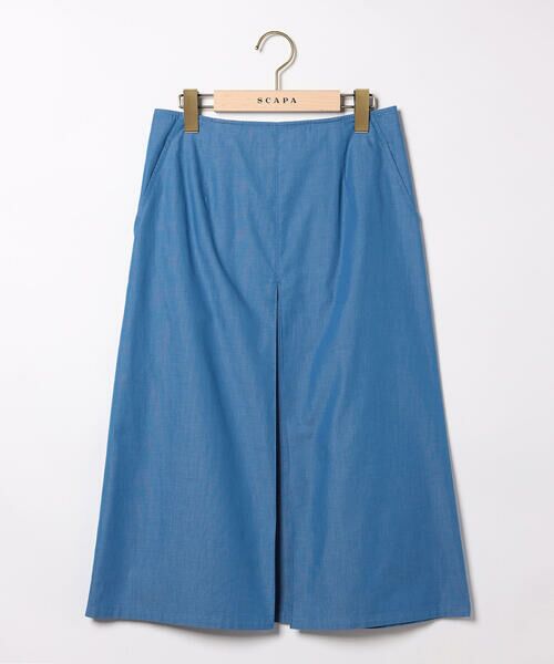 大人の気品とカジュアルさを併せ持ったライトダンガリー生地のスカート。さらりとした質感や微光沢感、セミフレアシルエットやボックスプリーツなどがポイントです。快適なバックゴム仕様のウエスト、便利なサイドポケットも魅力。無地はもちろん柄物のトップスとも相性がよく、様々なコーディネートに活躍します。