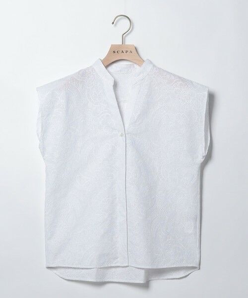 軽やかで薄手のコットンクロスに繊細な刺繍を施したブラウス。スキッパー風のバンドカラーを用いて、優雅ながらもシャープな印象に仕上げています。肩が少し隠れる程度のフレンチスリーブで、淑女のような気品をキープ。ボタンが目立たない仕立てで、カジュアルさを控えめにしているのも好印象です。※商品画像はサンプルを使用しているため、実際の商品と色味などの仕様が異なる場合がございます。予めご了承ください。