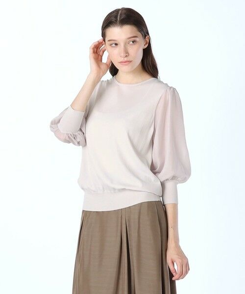 ロングシーズン活躍する薄手のニットプルオーバー。肩や袖口のギャザー使いが、フェミニンな華やぎをひとさじプラス。ボトムを選ばずにコーディネートでき、着こなしの幅も広がります。