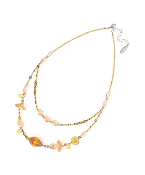 大小異なるビーズが連なる2連のショートネックレス。異なるカッティング、サイズのビーズとビジューが散りばめられた華やかなデザインが印象的なアイテム。透明感のある落ち着いたカラーでまとめ、顔まわりをさりげなく華やかに彩ります。いつもの着こなしにプラスして、おしゃれなお出かけスタイルが完成するアイテムです。※商品画像はサンプルを使用しているため、実際の商品と色味などの仕様が異なる場合がございます。予めご了承ください。model:T.175/B.83/W.59/H.89着用サイズ:F