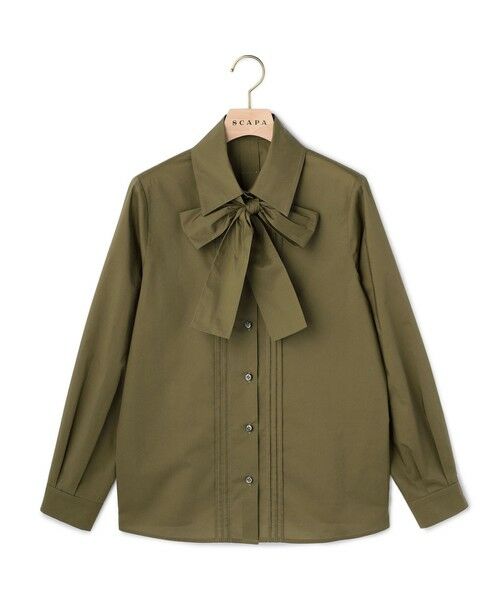 フロントのピンタックがクラシカルなアクセントになったシャツブラウス。生地にはさりげない光沢感があり、上品な印象です。共布のボウタイが付属して、シーンやコーディネートによってアレンジを楽しめます。一枚着として活用するのはもちろん、シンプルなジャケットやカーディガンのインナーにもおすすめです。※商品画像はサンプルを使用しているため、実際の商品と色味などの仕様が異なる場合がございます。予めご了承ください。model:T.175/B.83/W.59/H.89着用サイズ:38
