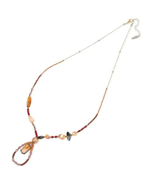 コーディネートに華やぎを添える美しいロングネックレス。色や形の異なるビーズを組み合わせ、センター部分に大ぶりなモチーフをあしらっています。Tシャツからニット、ドレスまで様々なアイテムと相性がよく、季節や着こなしを問わずにお使いいただける一品。アジャスター部分で多少の長さ調整も可能です。※商品画像はサンプルを使用しているため、実際の商品と色味などの仕様が異なる場合がございます。予めご了承ください。model:T.175/B.83/W.59/H.89着用サイズ:F