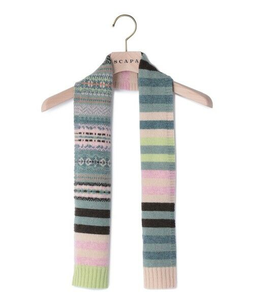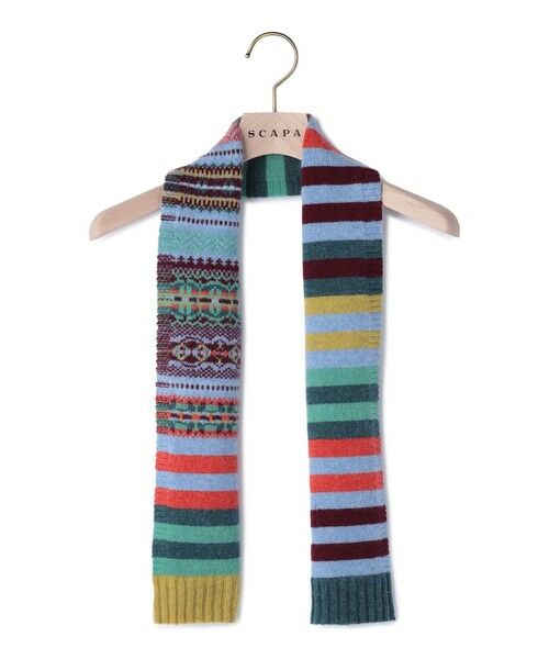 マルチストライプ柄とフェアアイル柄の組み合わせがおしゃれなミニマフラー。スコットランドのブランドERIBEは、オリジナリティある華やかなデザインが魅力。毛100%のあたたかな生地感で、秋冬シーズンの着こなしに最適。重くなりがちな秋冬シーズンの着こなしに、明るいアクセントを与えてくれるアイテムです。