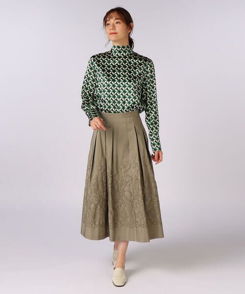 着こなしの主役として存在感を放つジオメトリックビンダブラウス。バックスタイルでキュッと結んだボウタイがレディなアクセントに。やや後ろ下がりのシルエット。シルクとポリウレタンをブレンドした品の良い光沢としなやかなさを併せ持つ素材がリュクスなムードを引き出しています。
