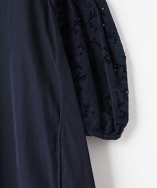 <人気スタイリスト大草直子さん監修ショップ>TICCAオリジナルレースが繊細なワンピース。高密度のポプリン生地に刺繍を施したエンブロイダリーレースです。木蓮をモチーフにした大花柄の総レース、小花柄の総レースと、裾に小花スカラップを施してパネルにデザインしてあります。適度にゆったりとした身頃に、デコルテから顔まわりを美しく見せてくれるスキッパー襟がとてもバランスよく、甘さとシャープさを絶妙に併せ持ったデザインです。ボトムのレイヤードがしやすいデザインなので、下にパンツを合わせるのもおすすめ。足もとはパンプスはもちろん、スニーカーやサンダルなど、カジュアルなスタイリングも◎