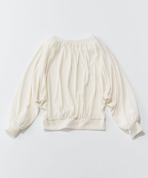 <人気スタイリスト大草直子さん監修ショップ>フロッキーな素材と重くならない透け感が特徴のアイテム。ふんわりとしたドルマンスリーブと、程よく開いたボートネックで抜け感のあるきれいめスタイルに。