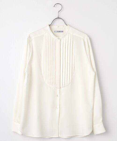 <人気スタイリスト大草直子さん監修ショップ>上品な光沢感と柔らかな質感が魅力の梨地素材を使用したブラウスです。シンプルながらもエレガントなデザインで、フロントには細かいタックが施され、ボタンで開閉する仕様になっています。どんなボトムにも合わせやすいトラッドなデザインで、カジュアルからフォーマルまで幅広いシーンで活躍する一枚です。